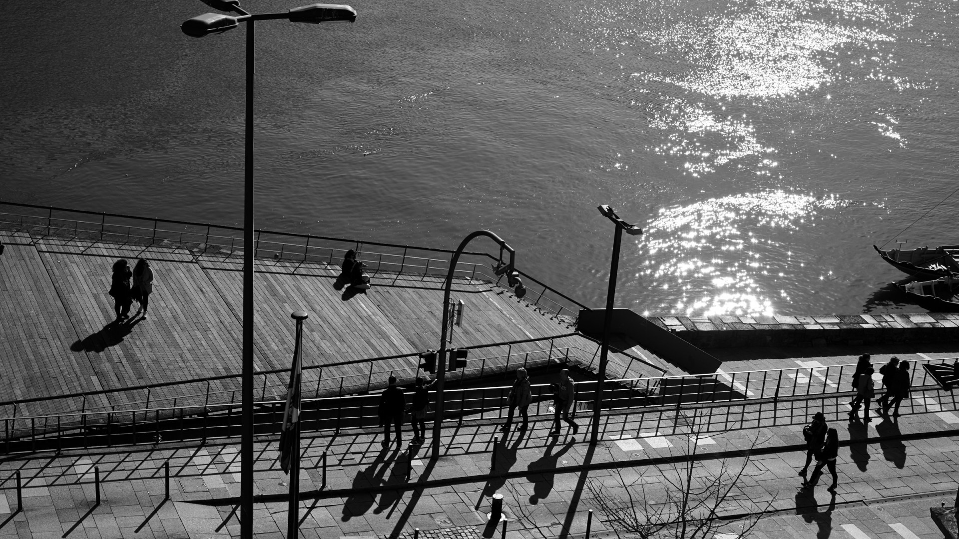 Here there’s no people at all! But by using shadow we’re showing a scene and making a visual play on the fact the shadow is at an angle (it’s actually level, in fact – I’m actually standing on the bridge that is featured in the preceding image)