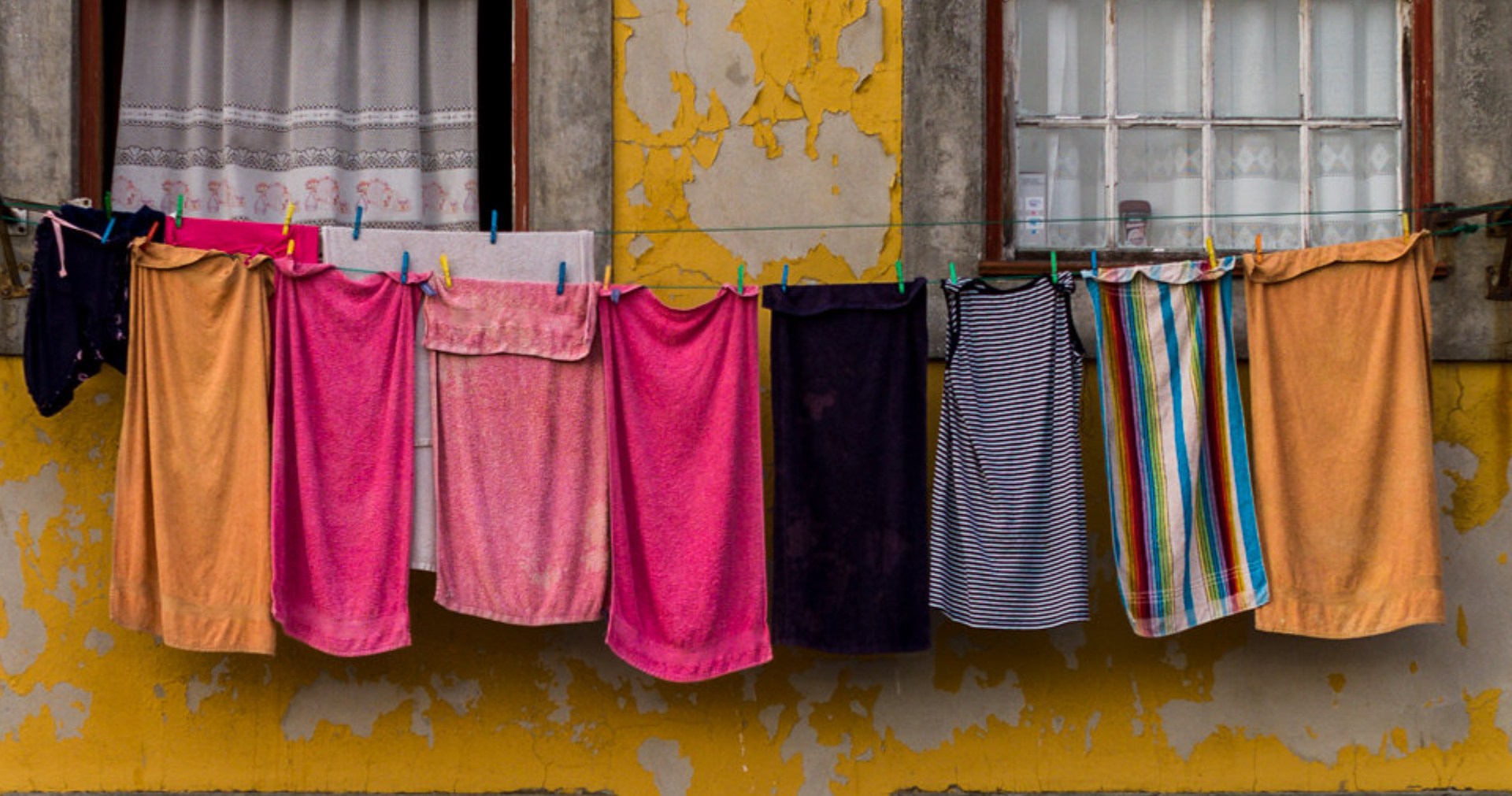 Clean towels hanging to dry